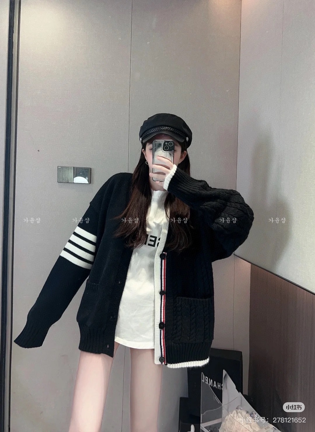 톰브라운 울 4스트라이프 니트 가디건